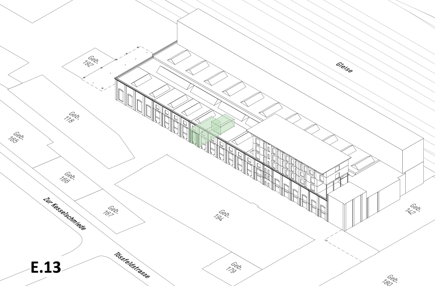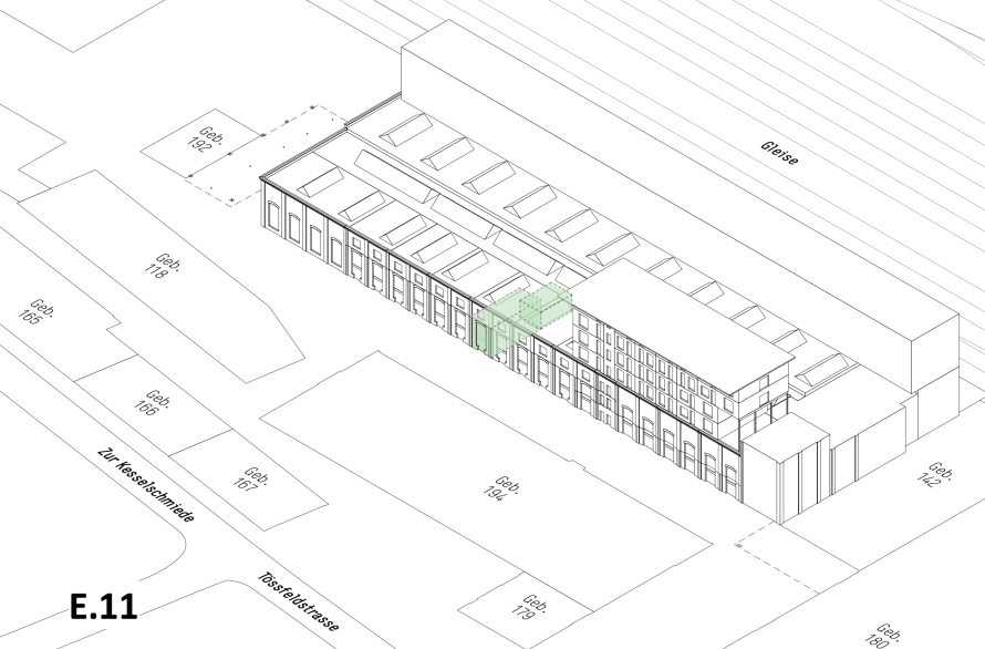 Die Räumlichkeiten befinden sich im Erdgeschoss mit direktem Zugang von aussen. Sie sind für produzierendes und kreatives Gewerbe mit und ohne Publikumsnutzung gedacht. Die meisten Räume sind knapp 6 Meter hoch und verfügen über eine Galerie. Sie verfügen zudem über einen direkten Zugang zu einer Lagerfläche, welche bei Bedarf dazu gemietet werden kann. Die Fläche eignet sich ideal als zusätzliche Abstellfläche oder leichte Werkstattarbeiten. Rund ein Drittel der Räume ist eingeschossig mit einer Raumhöhe von 3 Metern. Die Vermietung erfolgt in ausgebautem Zustand, spezifische Anpassungen sind im Mieterausbau möglich. Es können auch mehrere Einheiten miteinander verbunden werden.